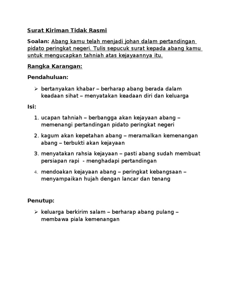 Surat kiriman tidak rasmi tingkatan 1.